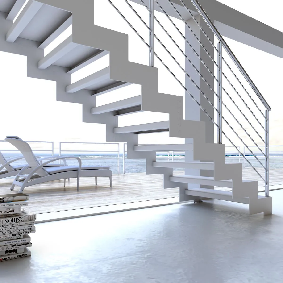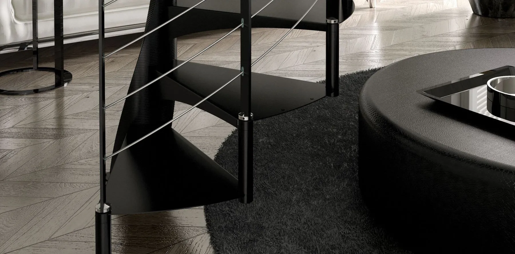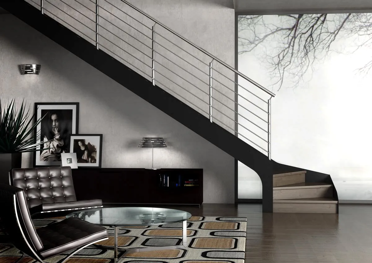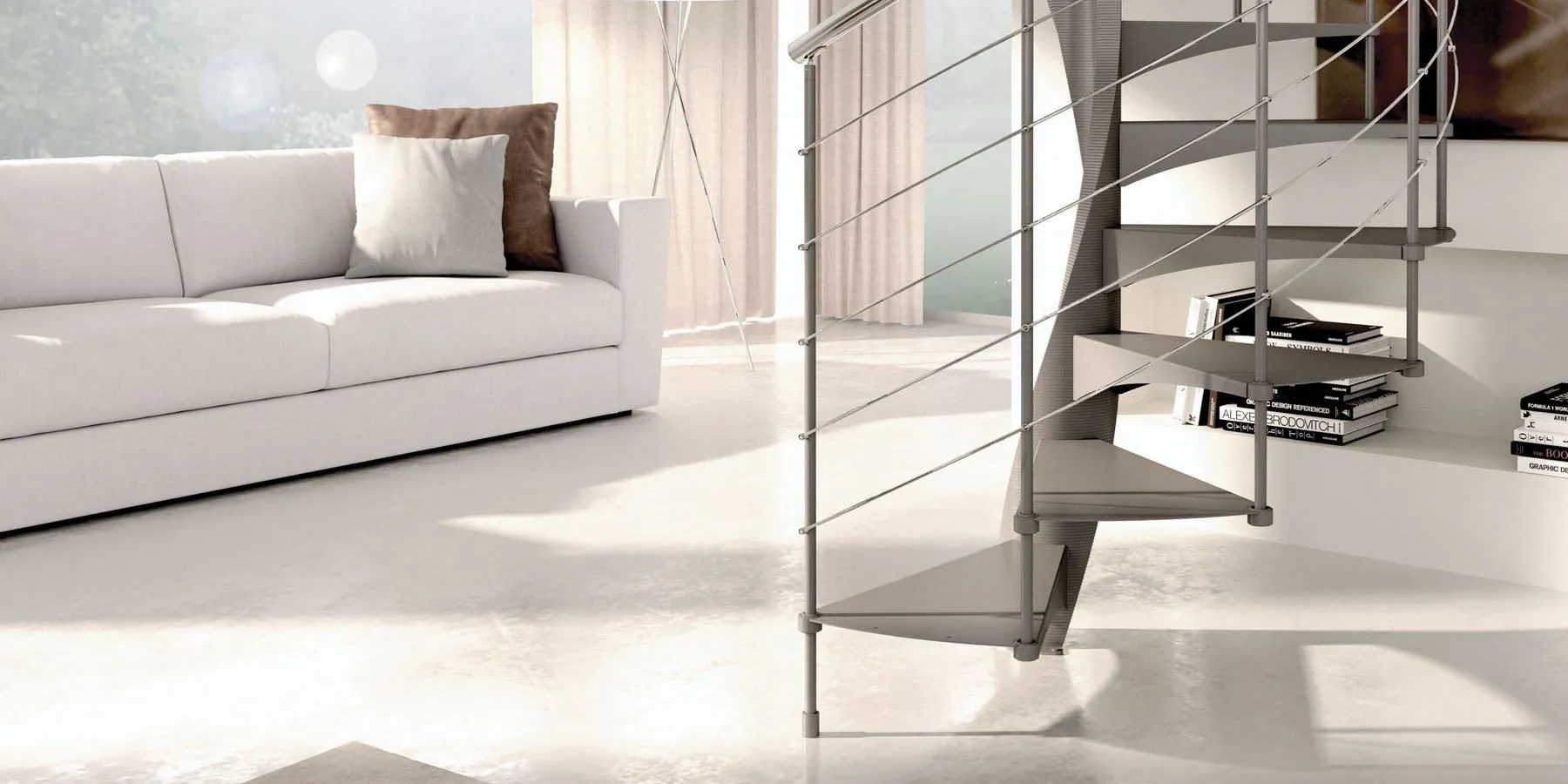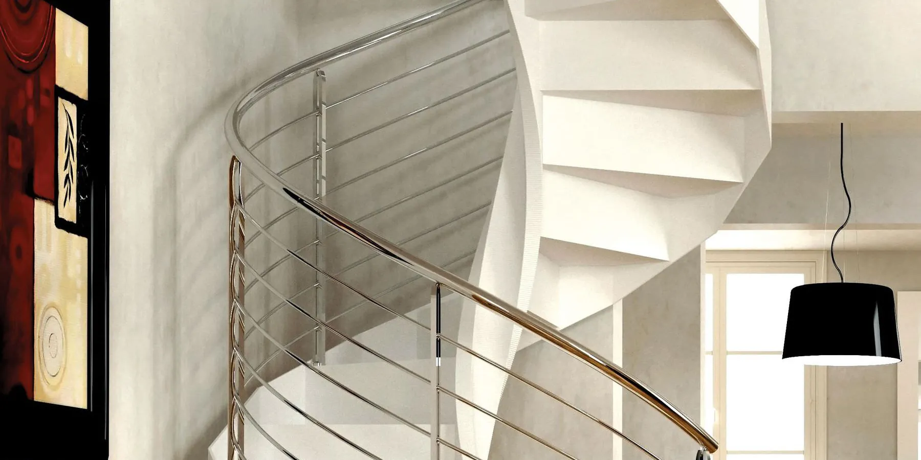 E' disponibile con ringhiera classica a colonnine verticali in metallo verniciato oppure ringhiera moderna con filoncini di acciaio, scopri la scala a chiocciola SMILE sul nostro e-Shop.